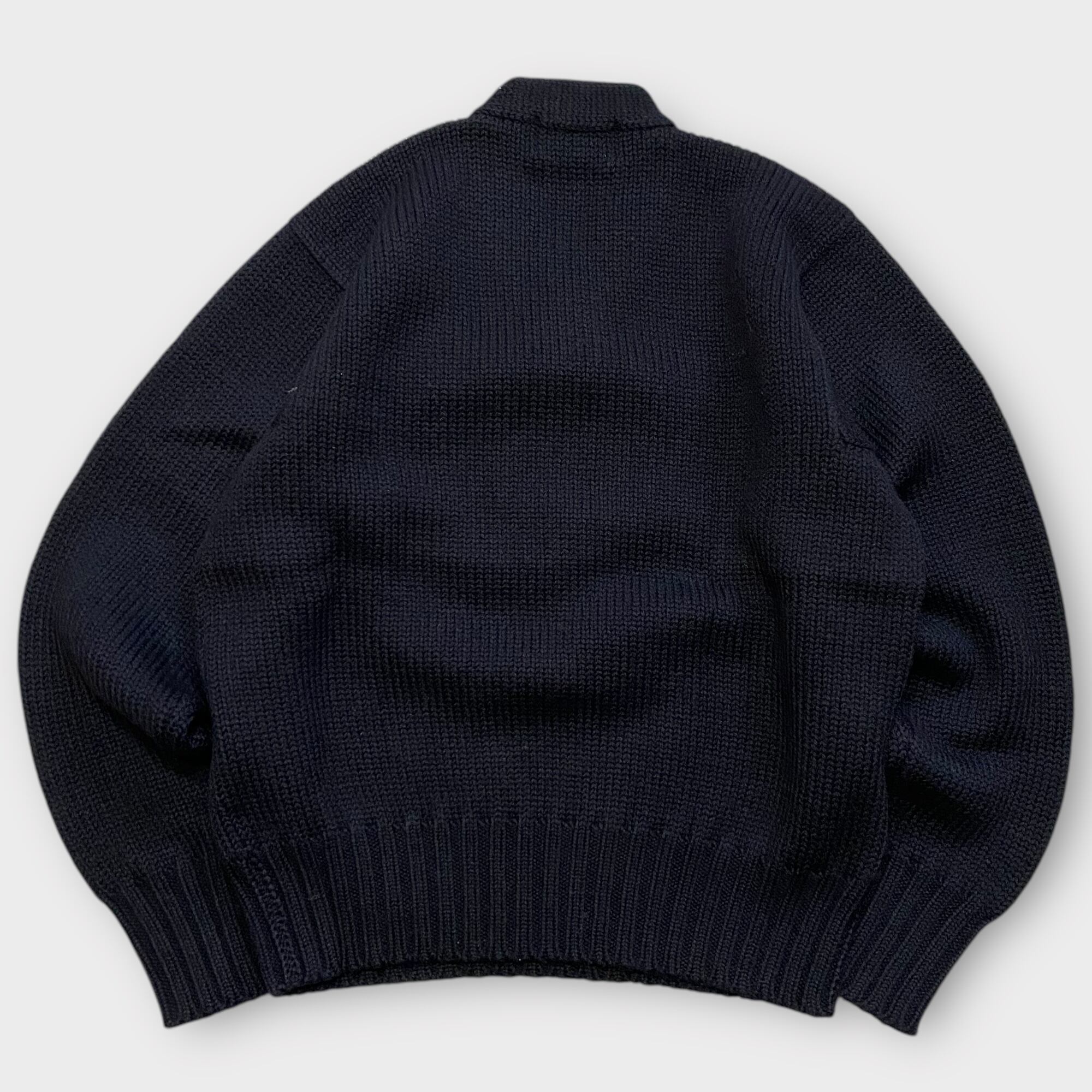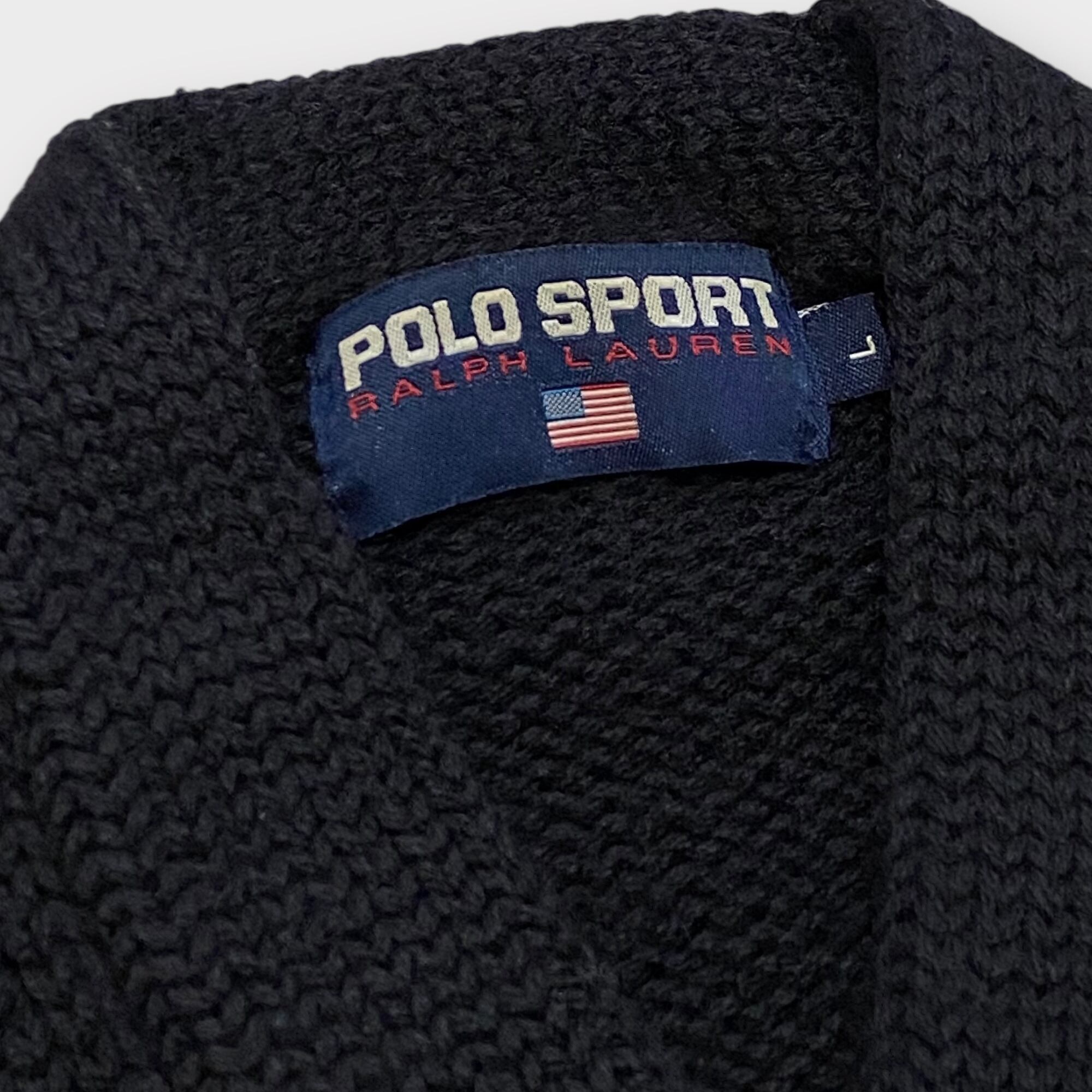 ポロスポの黒Vレタードセーター。Lサイズで抜群のサイズバランスは、どんなスタイルにも合わせやすく、シーンを選ばず活躍します。大胆なVネックデザインが首元をすっきりと見せ、レタードのアクセントが個性を引き立てます。
