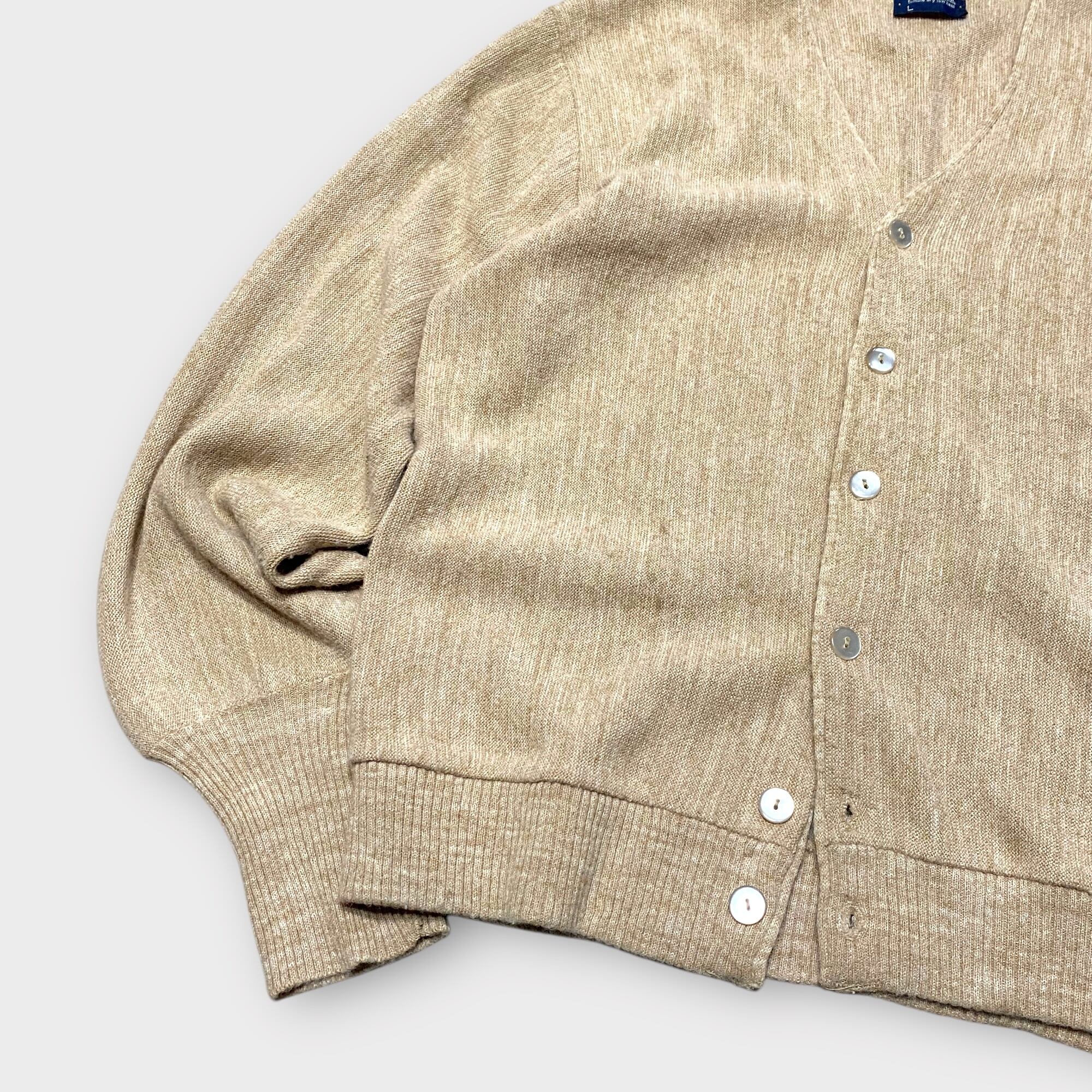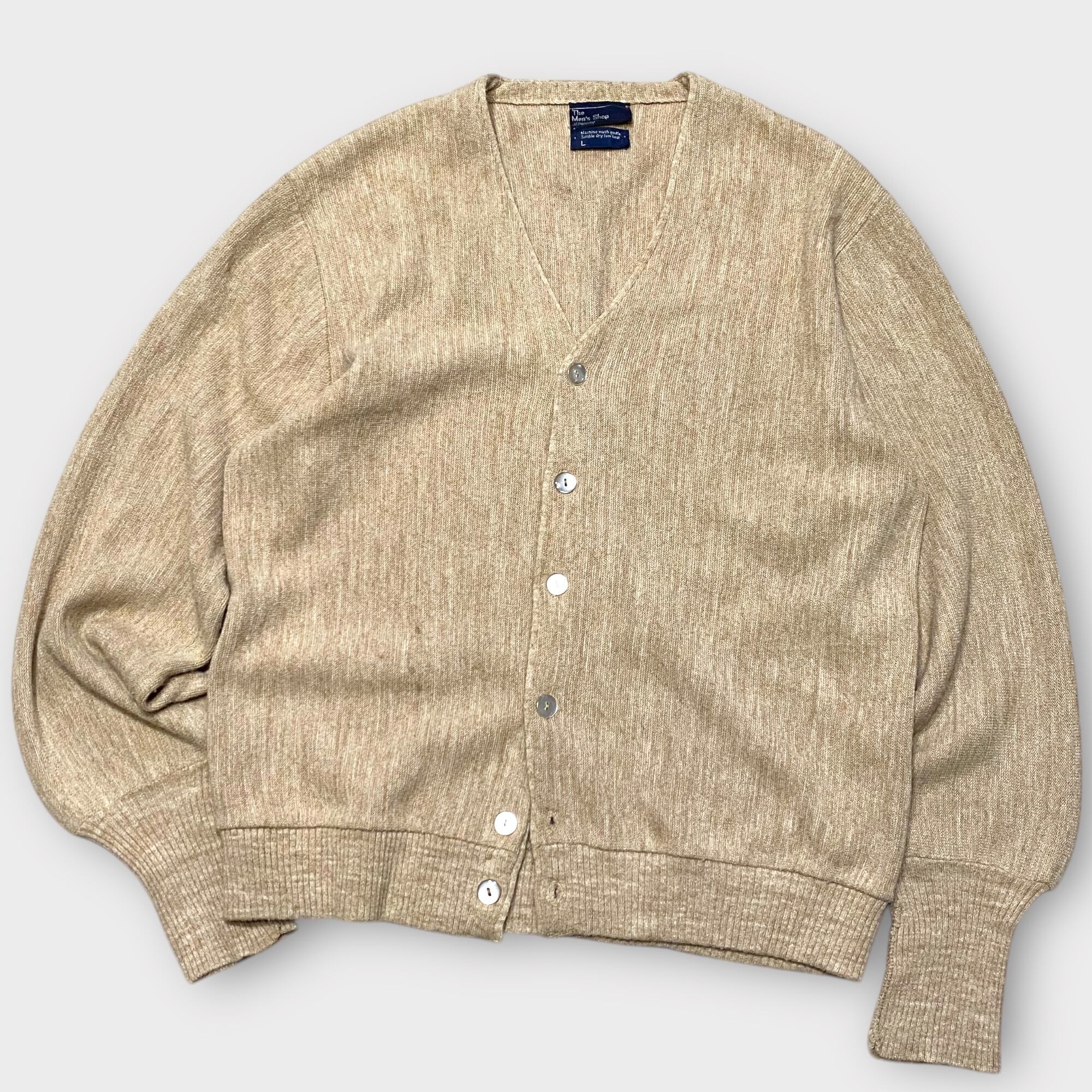 70年代のjcpennyアクリルカーディガン。ミックス感のあるベージュの編み地が魅力的で、バランスの取れた大きめサイジングがリラックスした雰囲気を演出します。この一着は、シンプルながらも存在感があり、コーディネートに奥行きをもたらします。