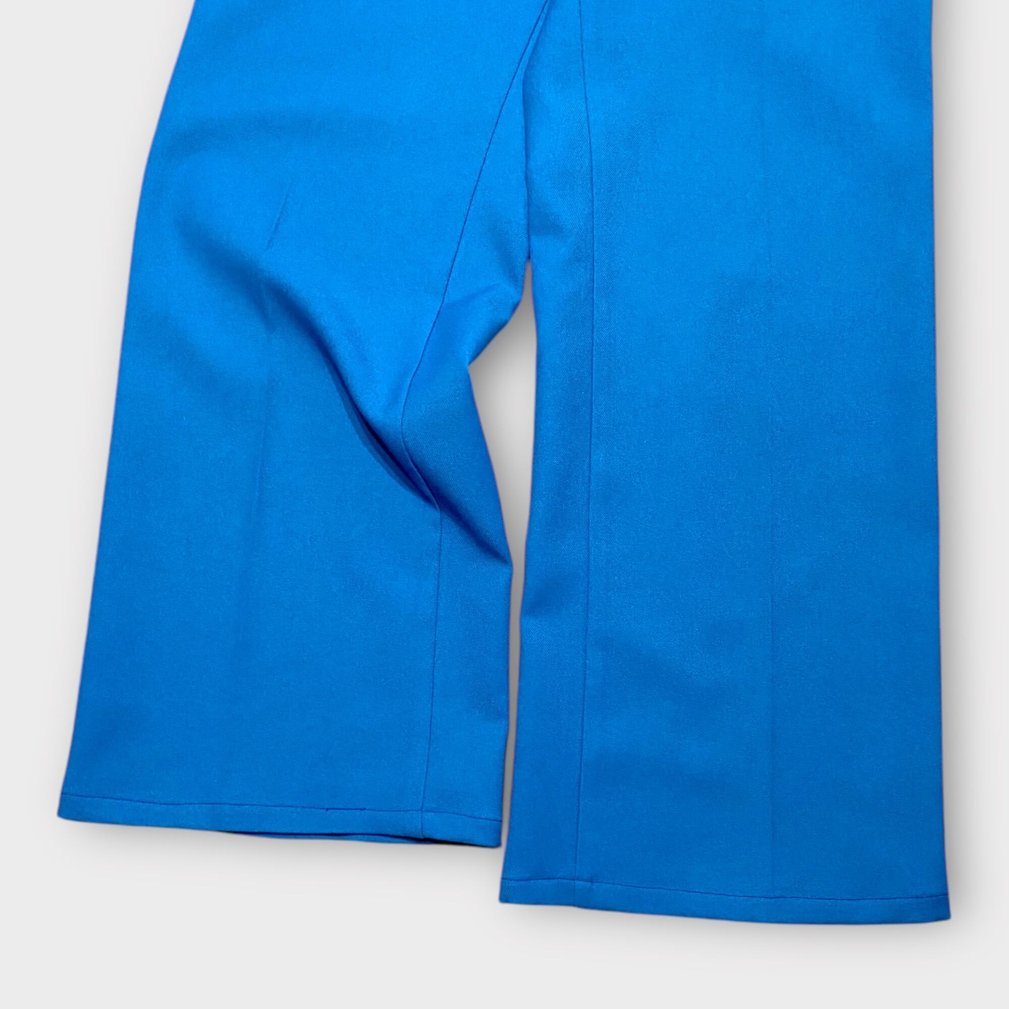 鮮やかなブルーカラーが魅力の70s Levisのワイドポリエステルパンツ。スタプレのような生地感が特徴で、美しいシルエットを保ちながらも、ケアレスで楽しめる一着です。快適さとスタイルを両立したパンツは、あなたのワードローブの強力なアシスタントとなります。