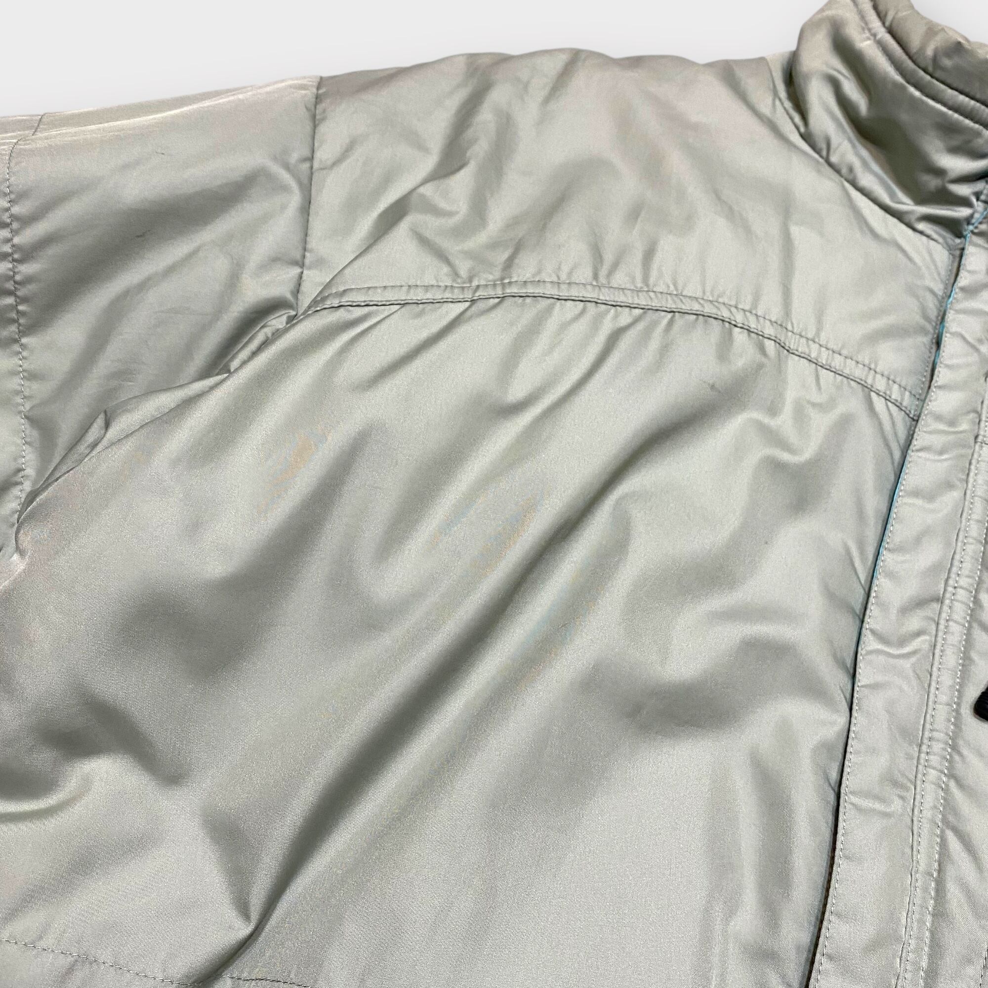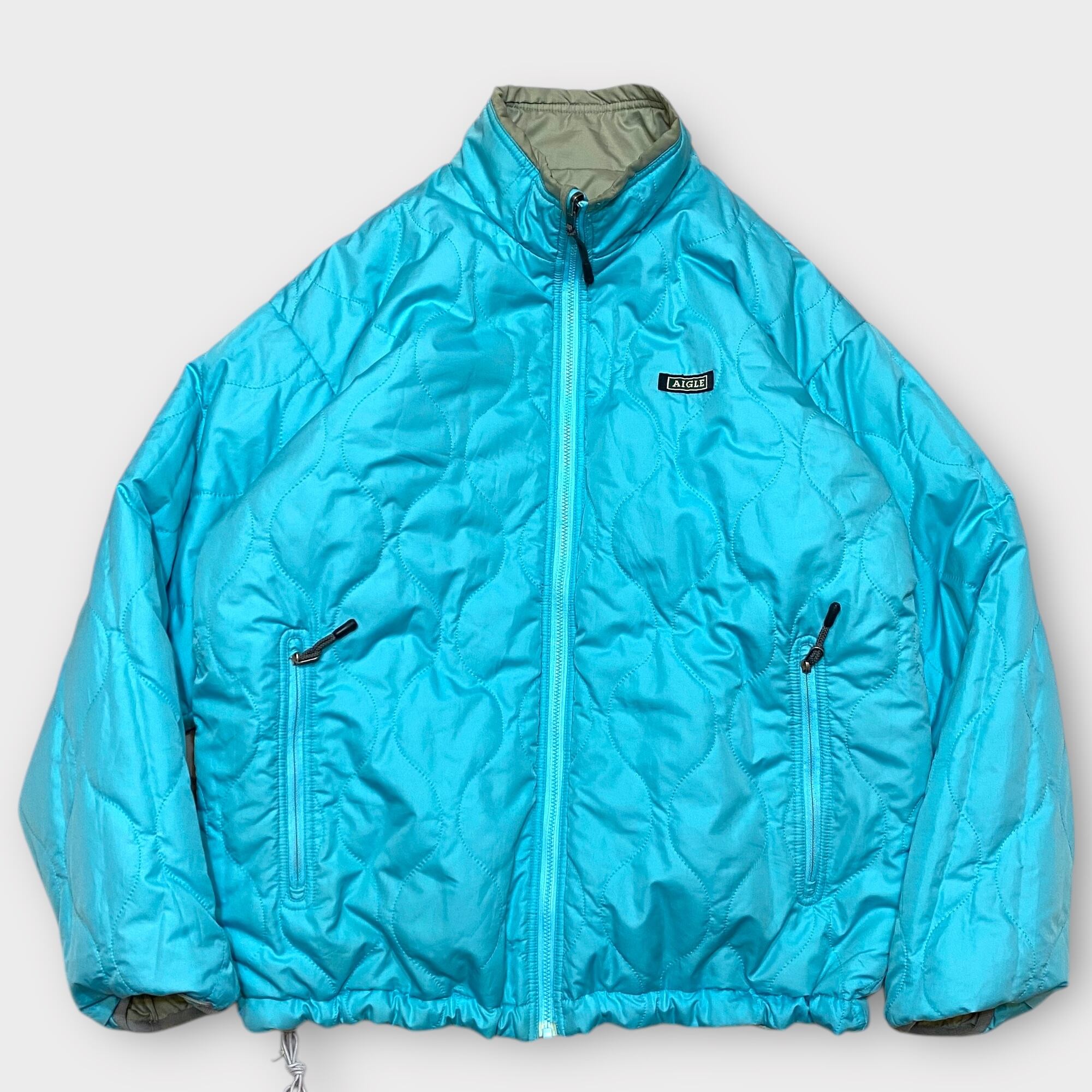 絶妙なグレーグリーンカラーと最高なティファニーブルーが特徴の、このリバーシブルジャケットは、ボリューム感のあるデザインが魅力で、カジュアルなスタイルを引き立てます。