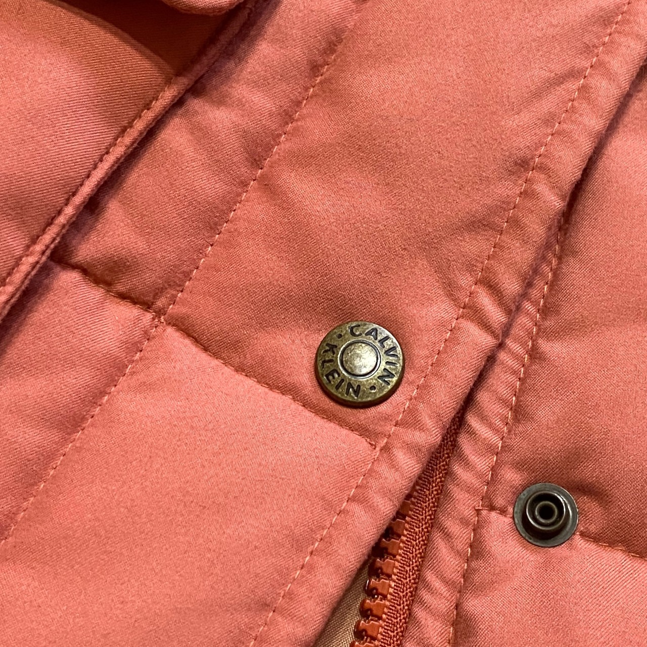 マットなサーモンオレンジカラーが印象的な90s- calvin klein detachable puff jacketは、スタイリッシュで機能的なデザインが際立つ一着です。脱着可能な袖が嬉しいディティールで、春先までベストとしても活用できる多才さを兼ね備えています。