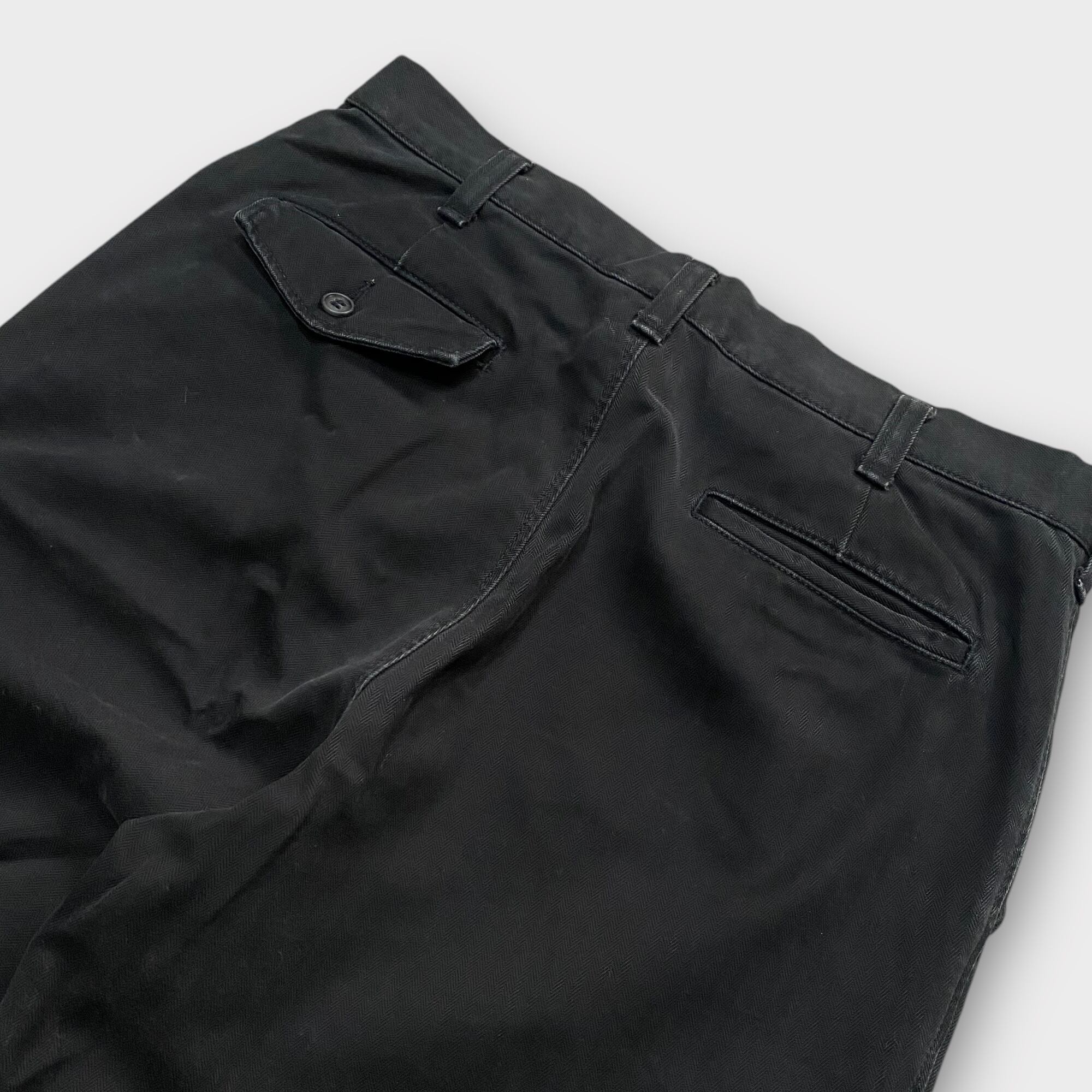 oshkoshのヘリンボーンワイドパンツは、思わず履いてしまう魅力的な一本です。ブラックのヘリンボーン生地がシックで、ワイドなシルエットが絶妙なバランスを醸し出します。また、コットン100%のため、ガシガシと気軽に履ける点が嬉しいポイントです。