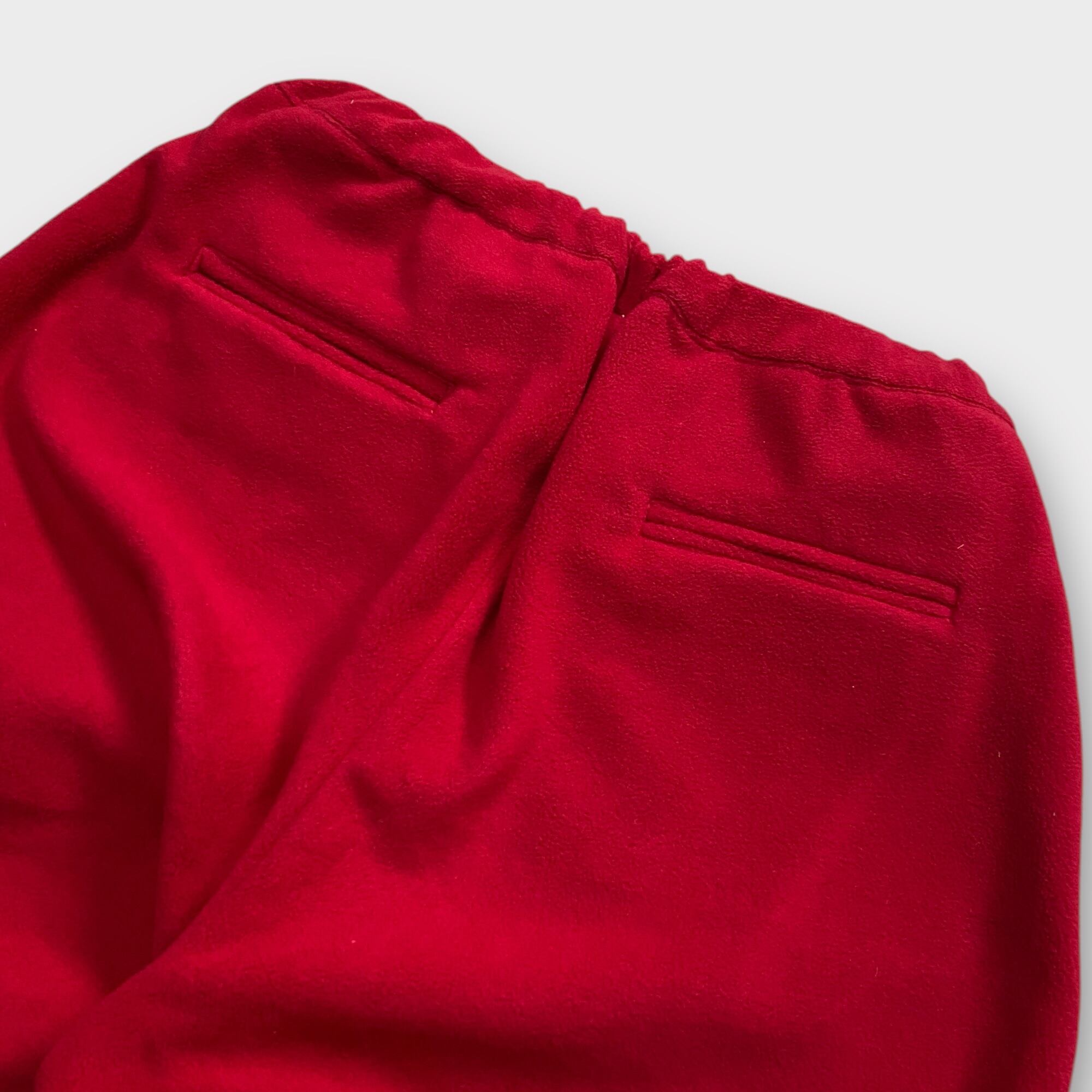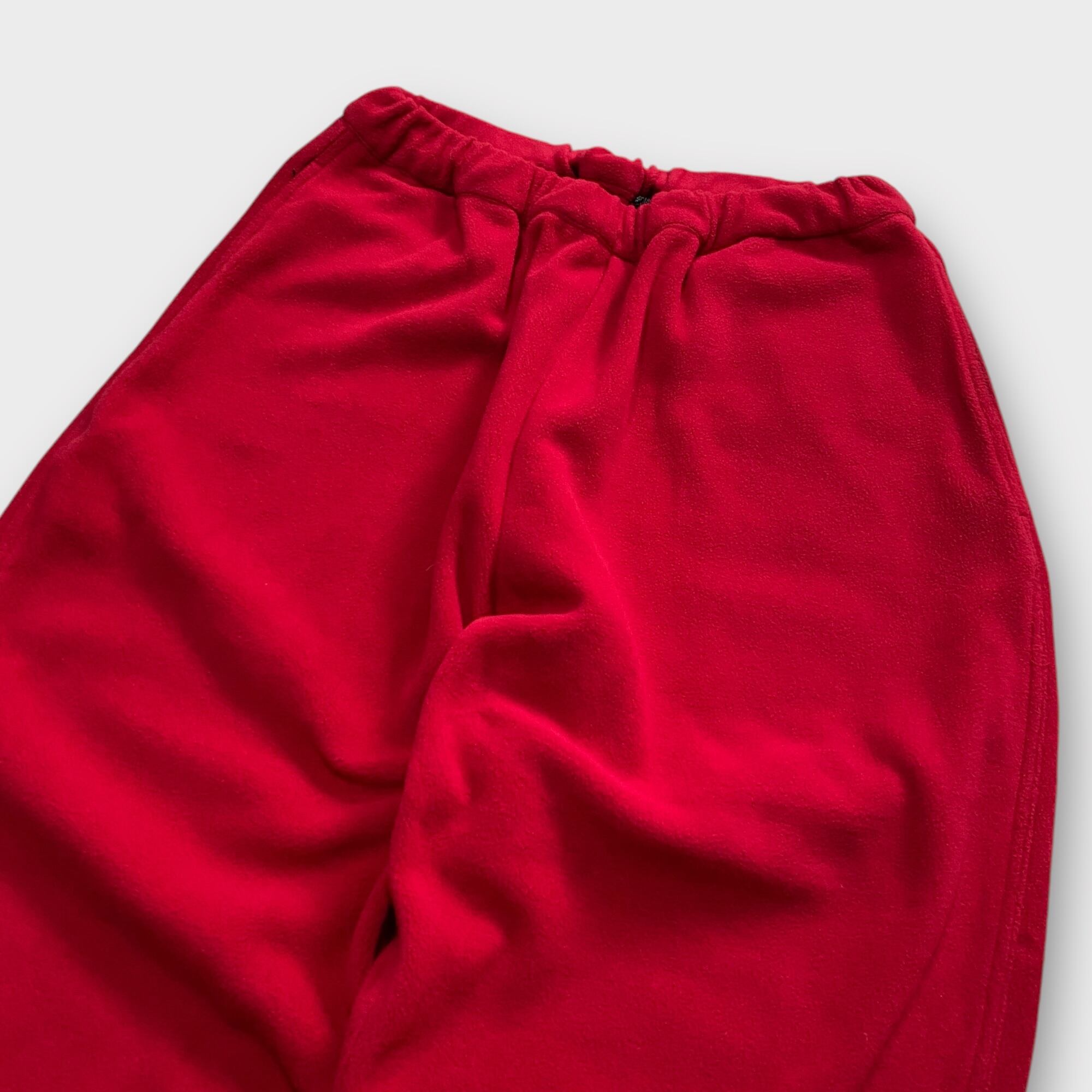 物凄く太いシルエットが特徴のフリースパンツは、鮮やかなレッドカラーが魅力的で、どんなスタイルにも汎用性が高いアイテムです。フリース素材の柔らかさと心地よいフィット感を実感できるため、リラックスタイムからお出かけまで幅広いシーンでお楽しみいただけます。