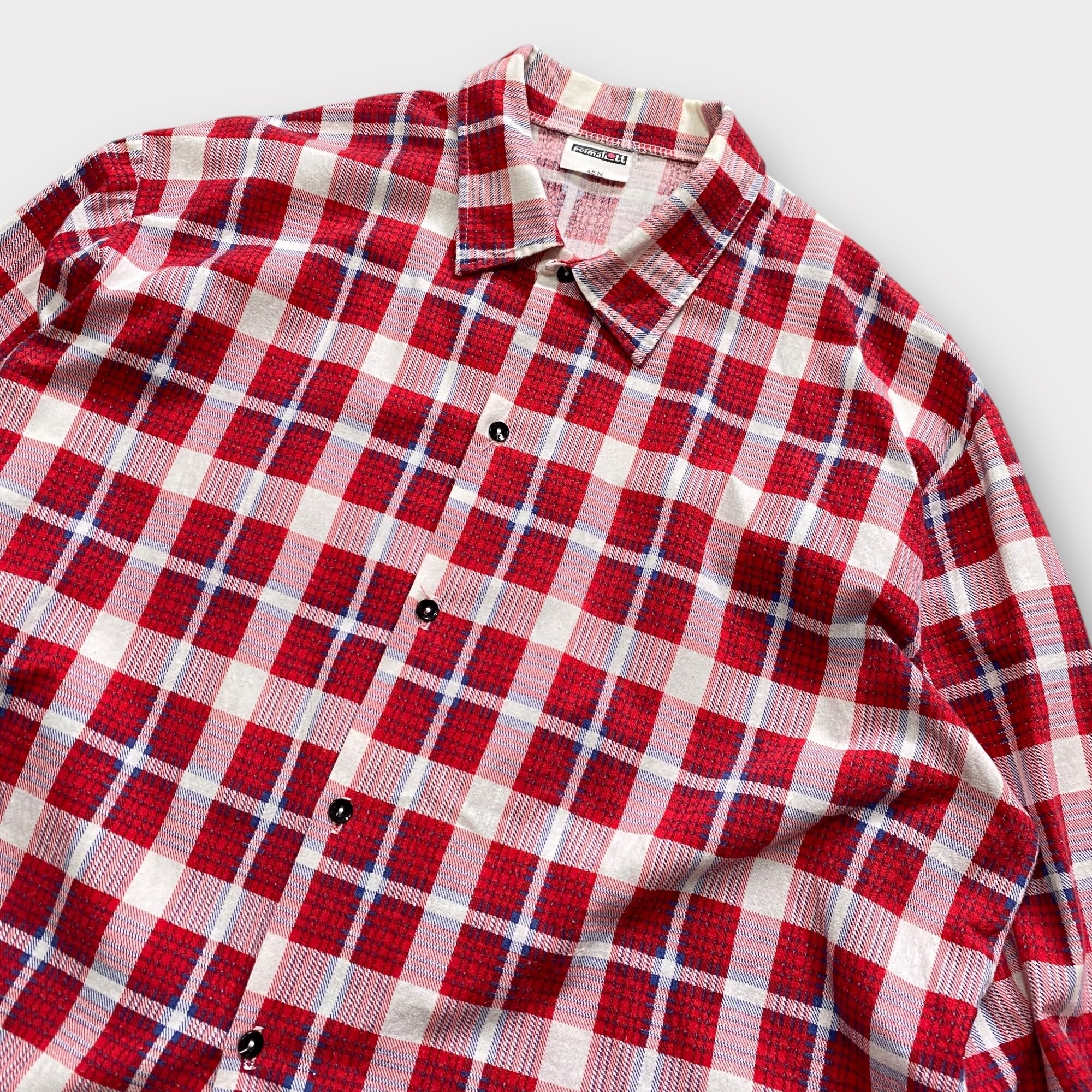 ホワイトベースにレッドチェックが映える、爽やかな印象の70s- print flannel check shirtです。このシャツは、シンプルながらも存在感のあるデザインが特徴で、あなたのコーディネートに新しい風を吹き込んでくれます。